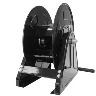 Stalen haspel met 20 bar koppeling en 170 mm drum, geschikt voor 100 meter slang met 6 of 8 mm doorvoer. Zeer concurrerend geprijsd!