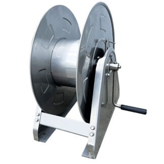 Introductie RVS Haspel. Sterke haspel in RVS! Op de drum van 170 mm breed past 100 meter slang van 8×12 mm.